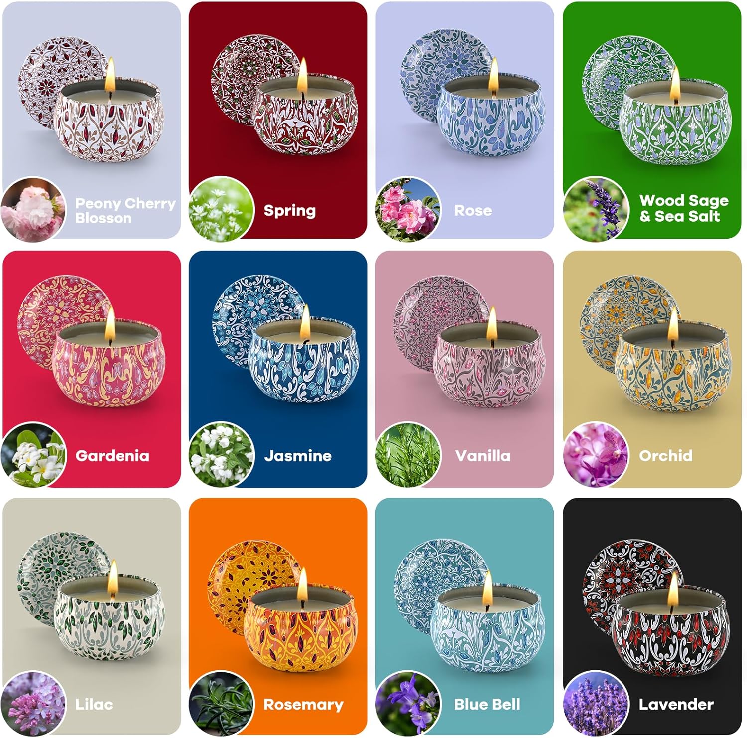 Scented Candle Set, 12 Pack Candles Gift for Home Scented, Aromatherapy Candle Gift, 2.5 oz Long Lasting Soy Candles for Men, Women, Friends Birthday, Mother's Day, Valentine Bath SPA