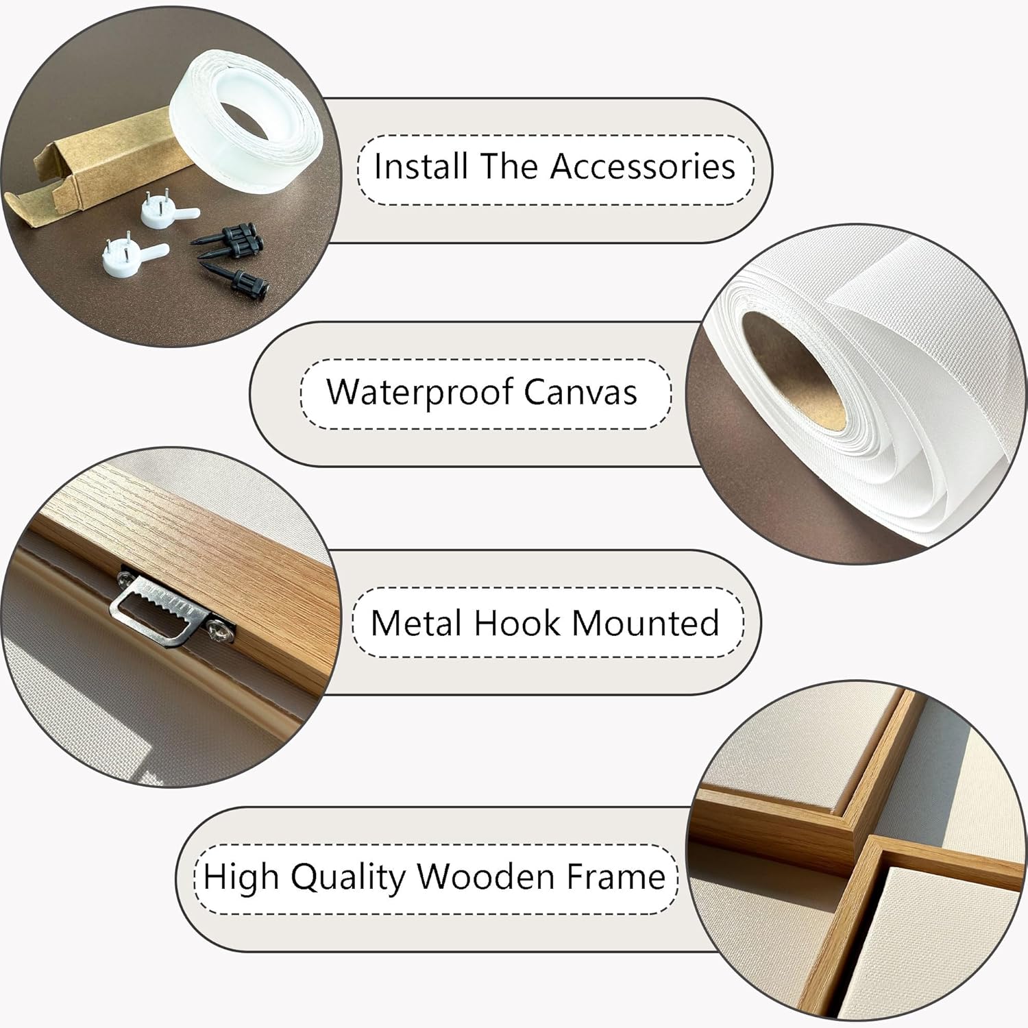 - Nature wall Art: Each piece comes pre-stretched on a solid wooden frame with pre-installed D-ring hooks and hanging accessories, making it easy to hang and instantly refresh your walls.