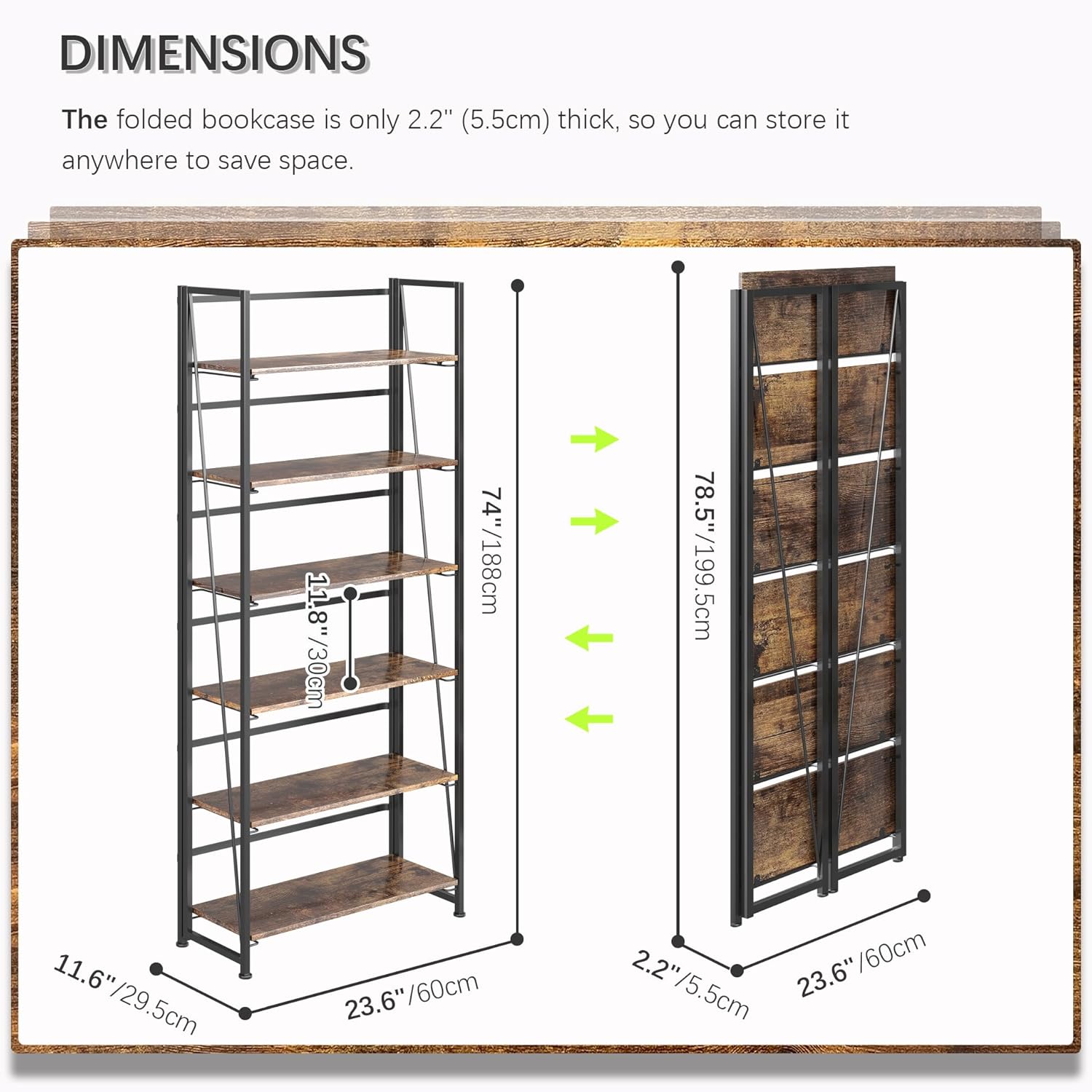 - ăSimplicity and practical folding bookshelfăit is a industrial style design with simplicity and retro, which can not only make your room in good order, but also occupy few space. You can put it in any space of your home, such as living room, bedroom, corridor, kitchen, balcony, etc