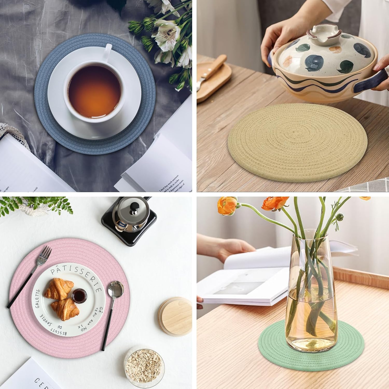 - Uses: These mats can not only be used as platemats, coasters, trivets, but also can be used as kitchen hot pads, can be placed in vases and flower pots. They are protective and decorative mats for table.