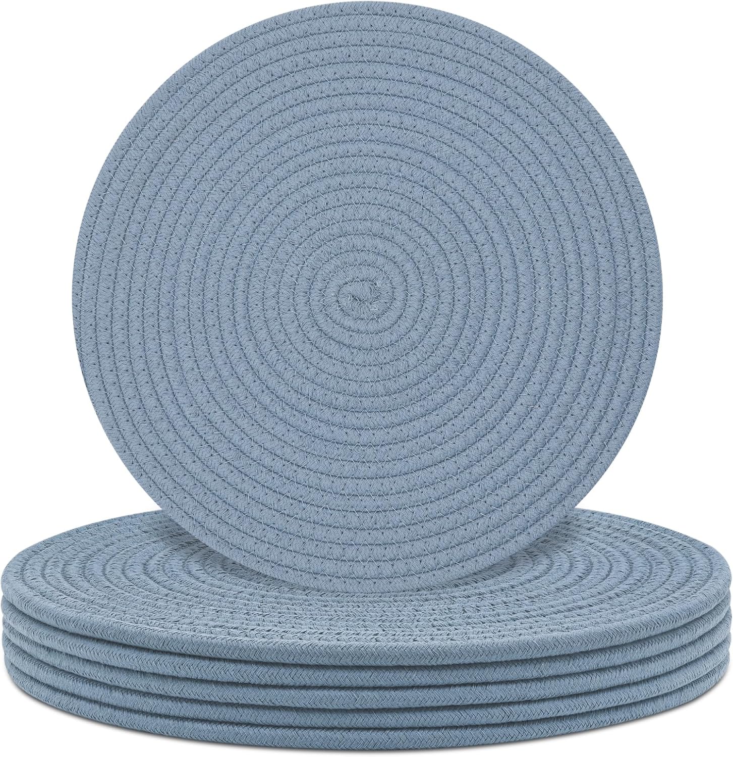 Round Placemats Set of 6, Cotton Rope Woven Table Mats, Hot Pads for Kitchen, Non Slip Heat Resistant Place Mats, 13 Inches Braided Placemat for Farmhouse Decor and Kitchen Table Decor (Blue)