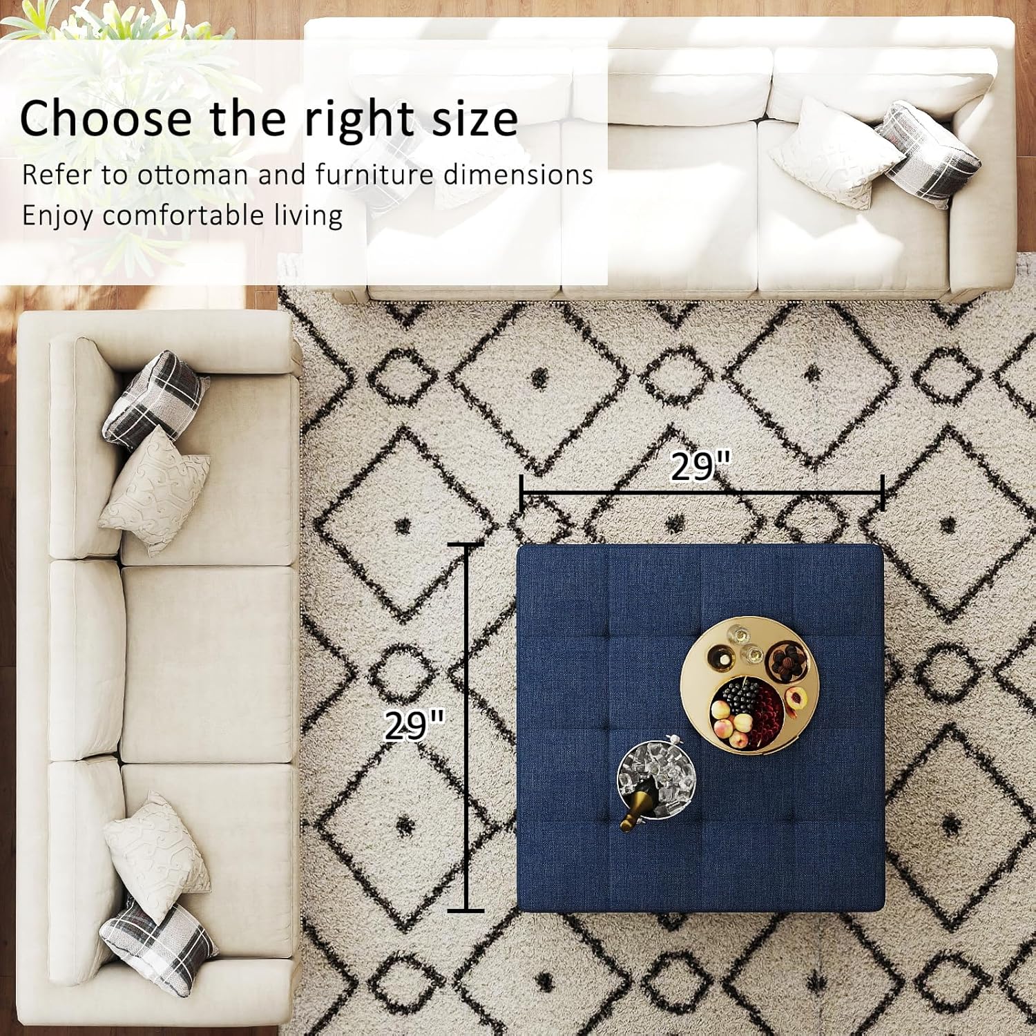- Comfortable and Safe: The square ottoman upholstery is made of high-end sponge with strong support and good resilience. The 3.2" thick high elastic sponge wraps the corners of the table to prevent bumping and protect your family's safety