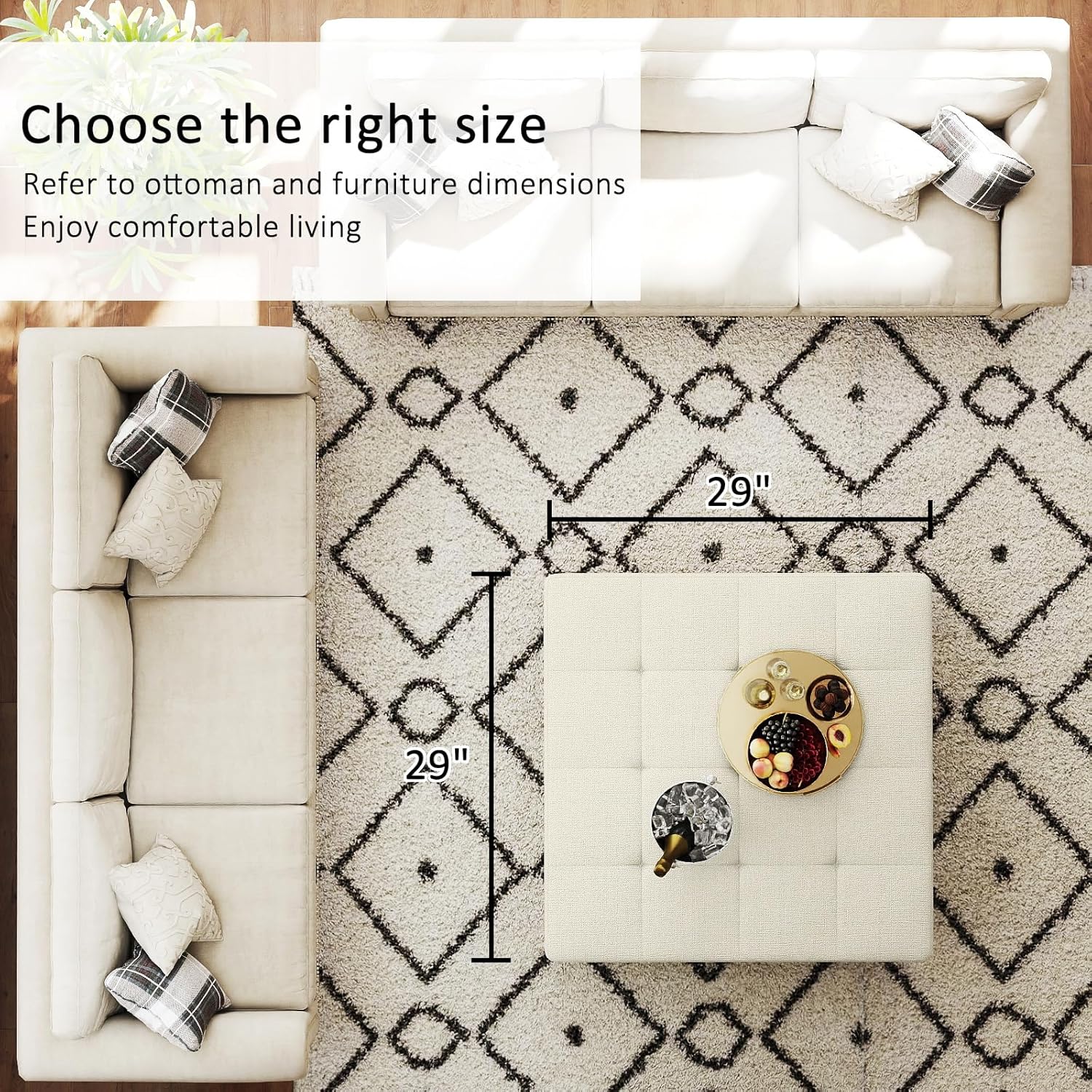 - Comfortable and Safe: The square ottoman upholstery is made of high-end sponge with strong support and good resilience. The 3.2" thick high elastic sponge wraps the corners of the table to prevent bumping and protect your family's safety