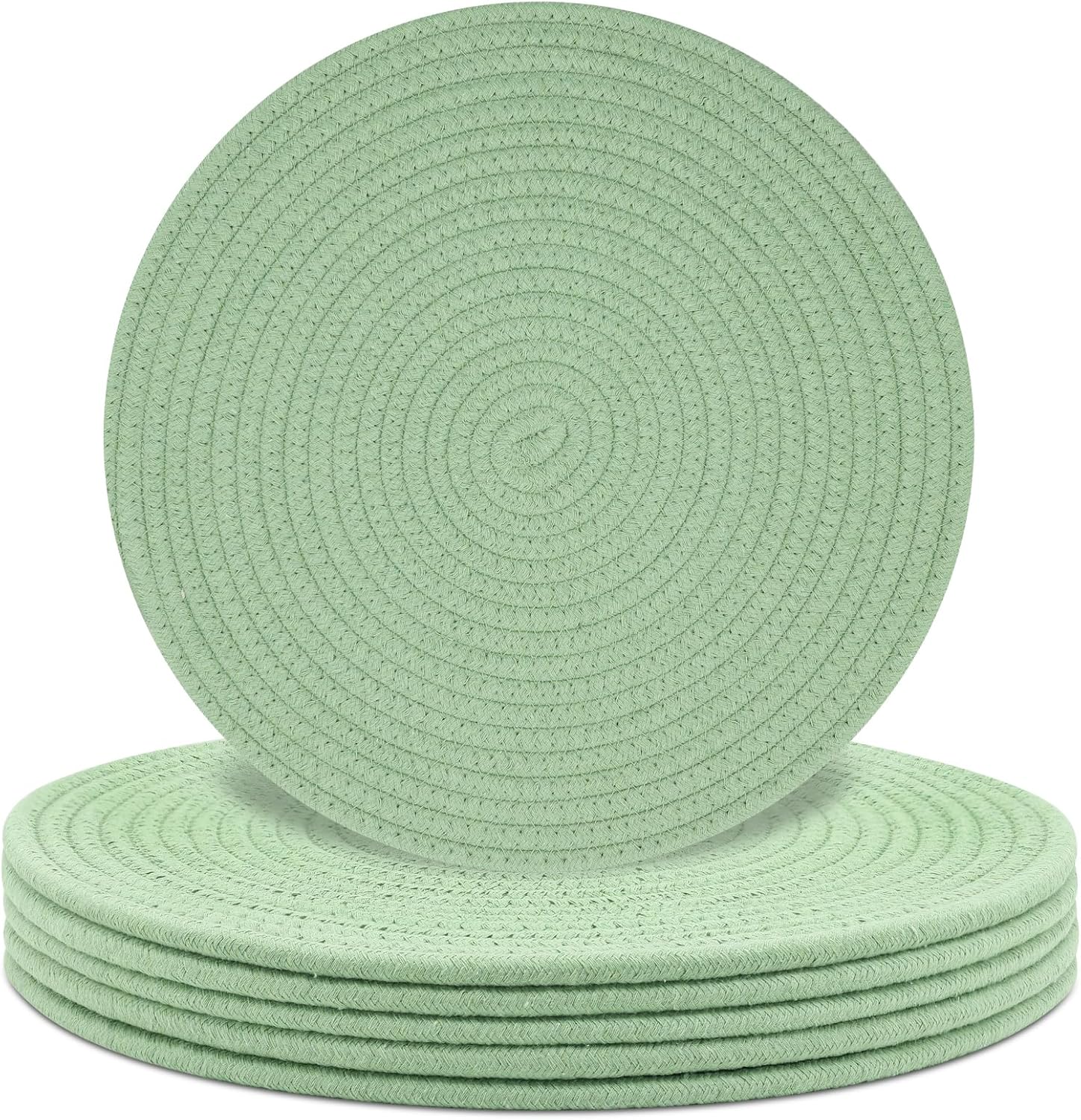 Round Placemats Set of 6, Cotton Rope Woven Table Mats, Hot Pads for Kitchen, Non Slip Heat Resistant Place Mats, 13 Inches Braided Placemat for Farmhouse Decor and Kitchen Table Decor (Green)