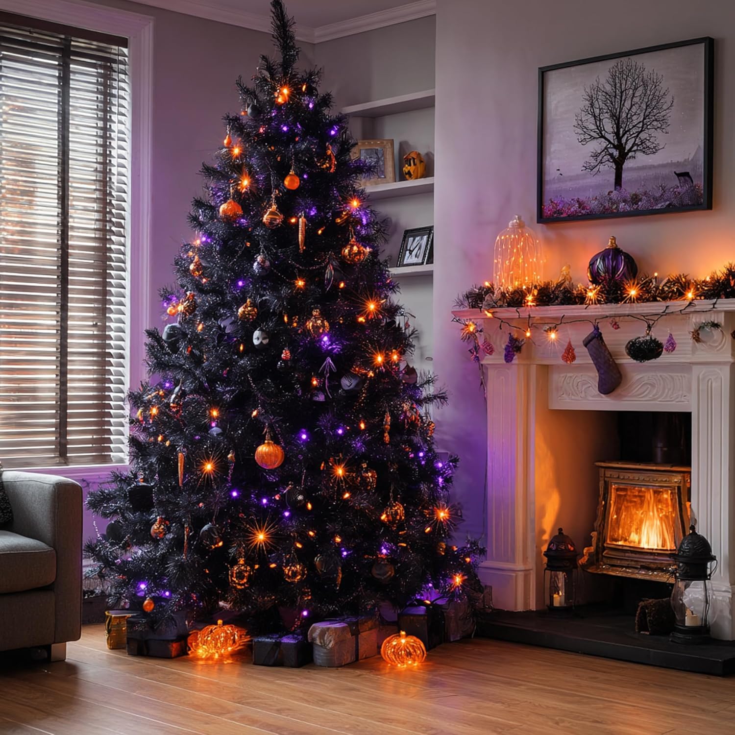 Dazzle Bright Outdoor Halloween String Lights, 1000 LED 328 FT Plug in Fairy Light with Remote Control 8 Modes & Timer, Waterproof Decoration for Home Garden Yard Wedding, Purple and Orange