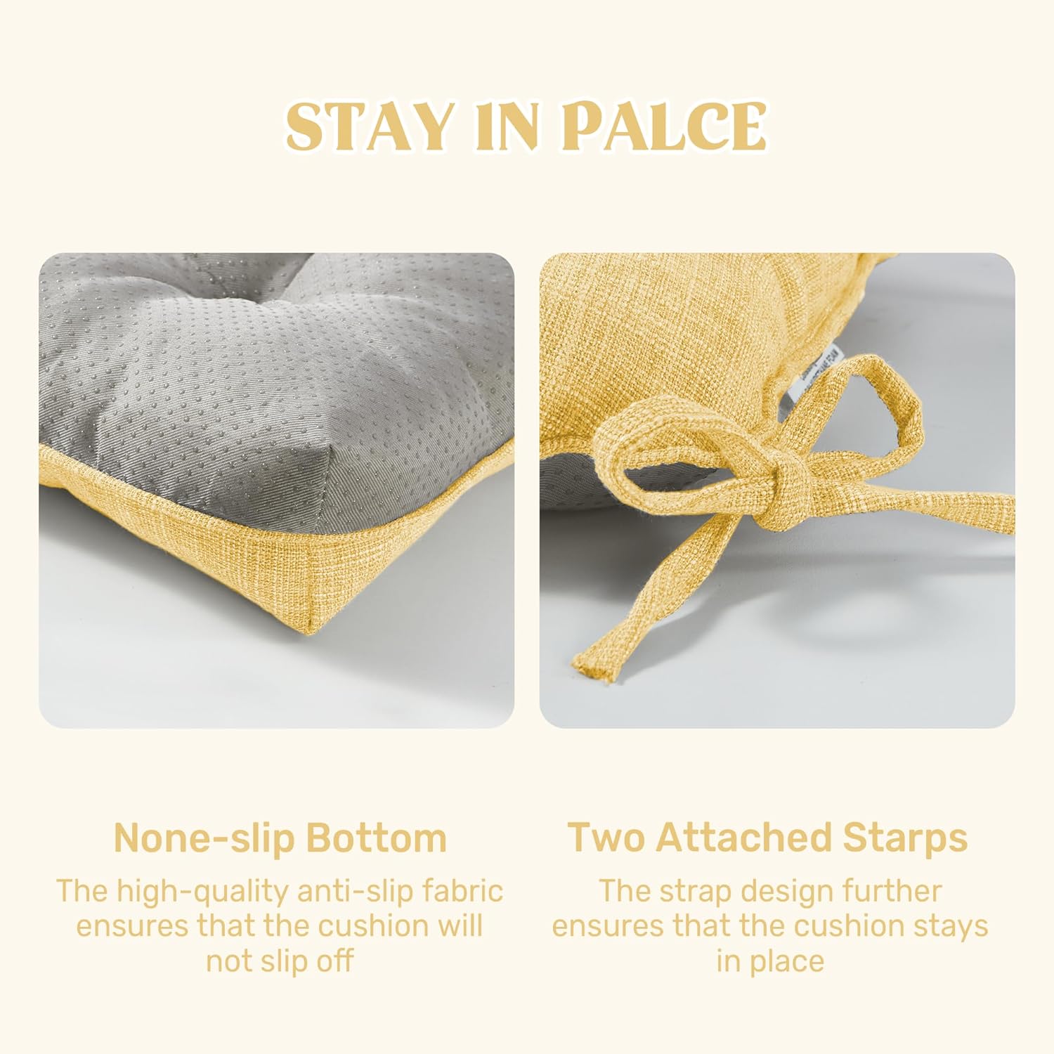 puredown® Chair Cushions for Dining Chairs, Tufted Memory Foam Chair Pads with Non-Slip Backing, Kitchen Seat Cushions with Ties, Washable Pads Set of 4, 15.5" x 15.5" x 4", Yellow