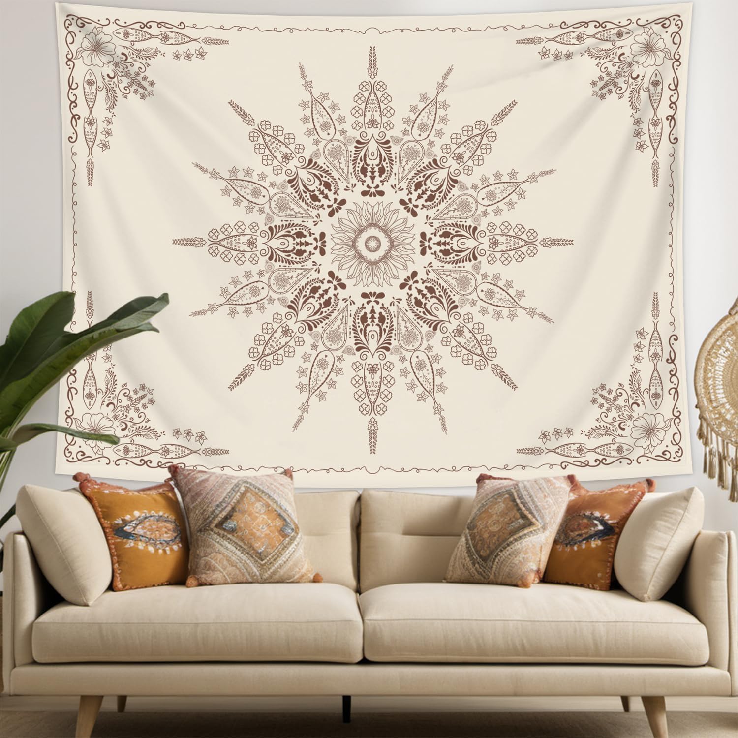 - 【Beautiful Floral Mandala Tapestry】Our bohemian floral tapestry features a hand drawn design and represents a beautiful mandala and floral pattern that blends bohemian and modern aesthetics, making it an eye-catching art piece for your wall.