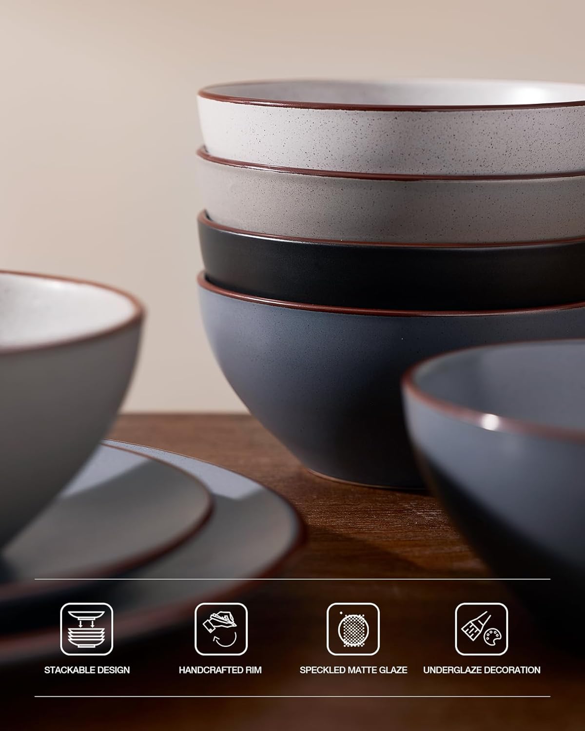 - [Awesome design]: Modern minimalist dinnerware with random speckled patterns, handcrafted rims, and warm matte glaze. Great for gifting, housewarming, hosting or daily use