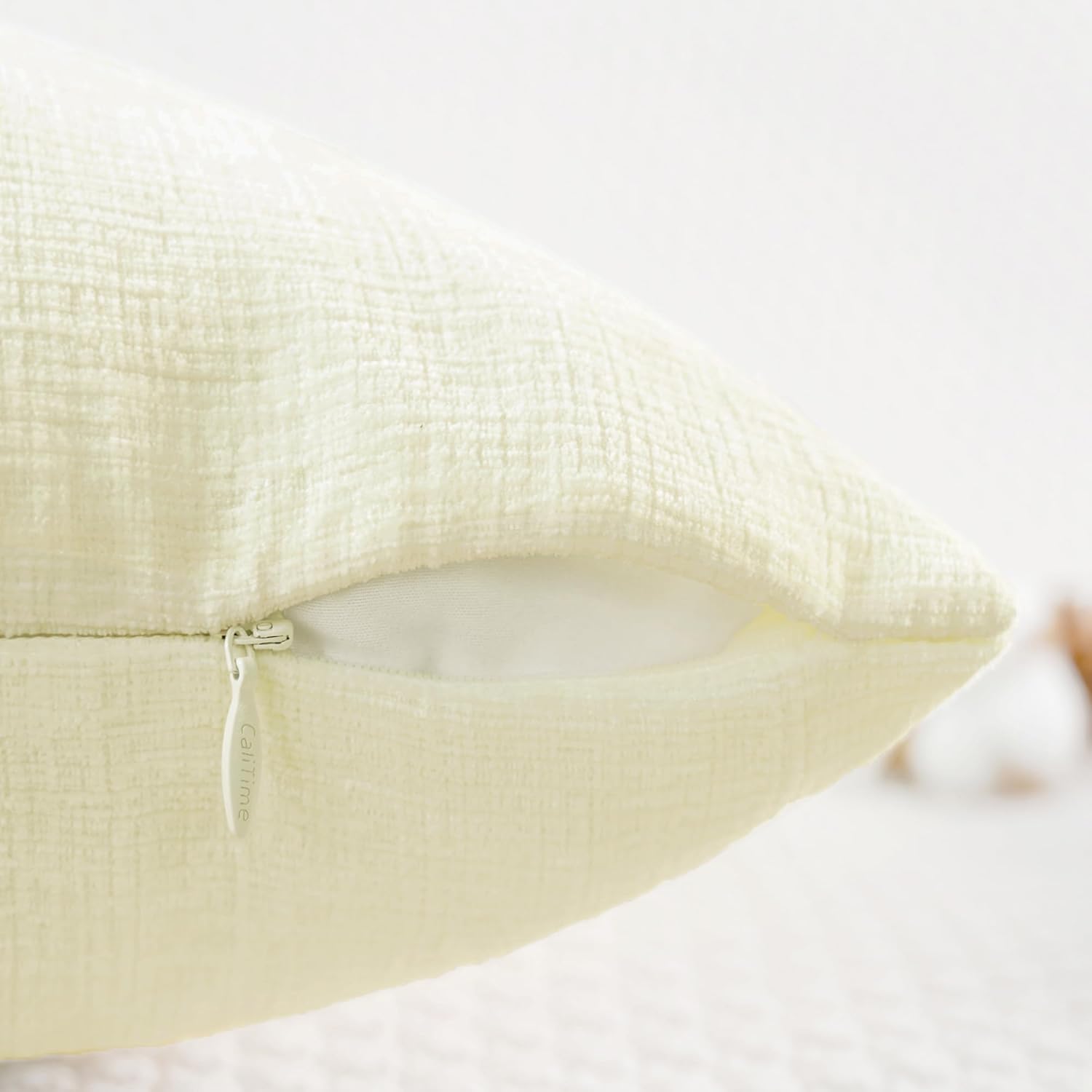 CaliTime Throw Pillow Covers Decorative 16 X 26 Inches Pack of 2 Cozy Chenille Cushion Cases for Couch Sofa Bed Living Room Home Beige