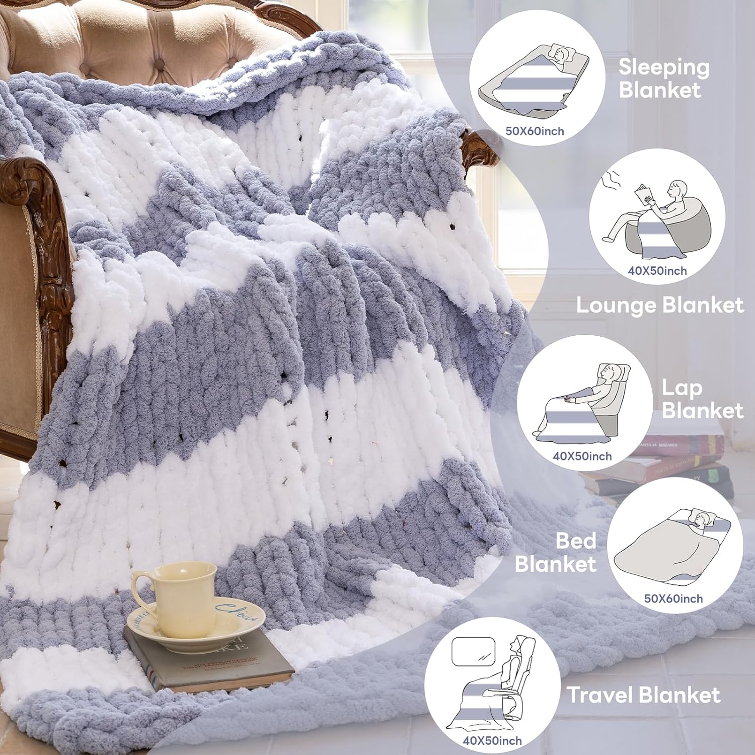 - Soft and Cozy: Made from high-quality, chenille yarn chunky knit blanket provides a soft and warm feel, perfect for cuddling up on cold nights.It will be your comfort companion,Great as chunky crochet blanket for any season
