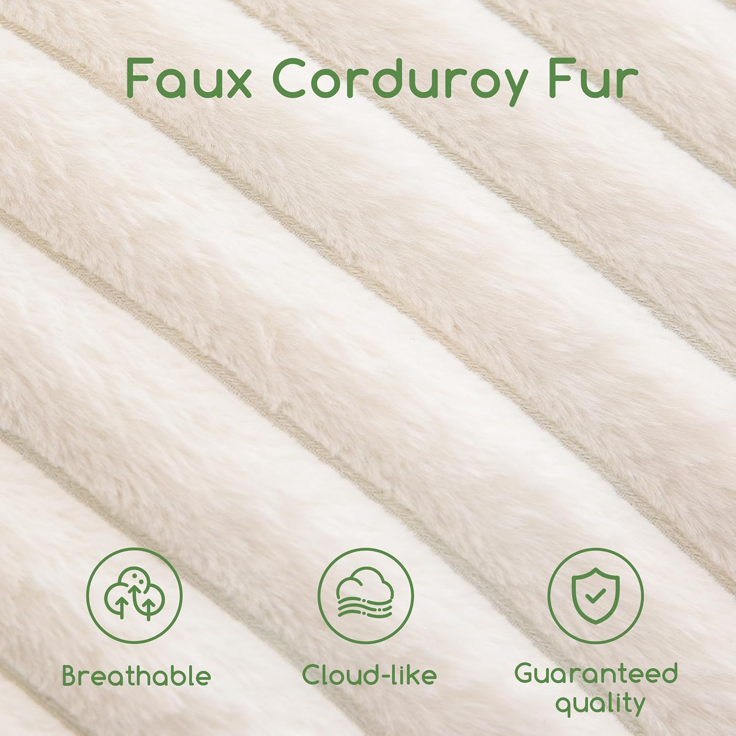 HIGOGOGO Round Stuffed Pouf Ottoman, Stripe Faux Fur Poufs with Foam Chunk Filling, Furry and Fluffy Pouf Foot Stool Storage Ottoman, 20 X 15 Floor Poufs Foot Rest for Living Room, Beige