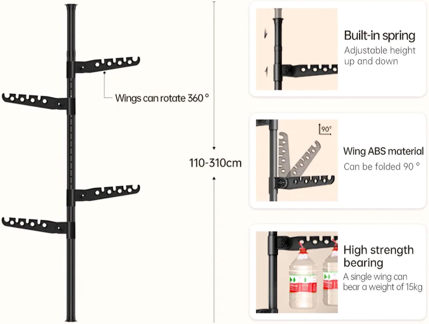 - Strong & Adjustable Design Height-adjustable pole with heavy-duty arms supports jackets, dresses, kids' clothes, and more—without sagging or wobbling