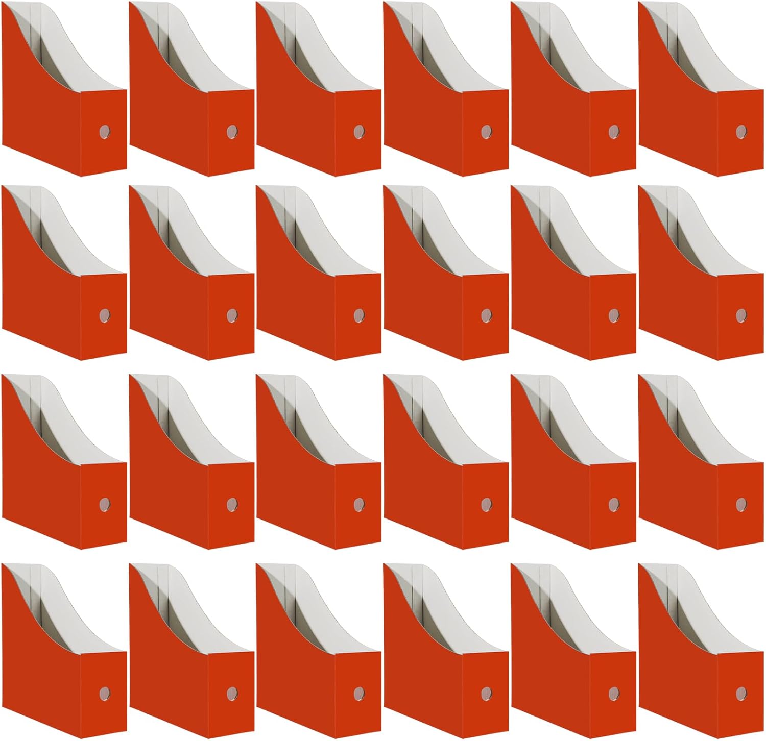 Cardboard Magazine Holder (24 Pack), Sturdy Book Bins for Classroom, Vertical File Folder Organizer, 10.6'' 10.2'' 3.5'' Inch Magazine Rack (Orange-Red, 24 Pack)