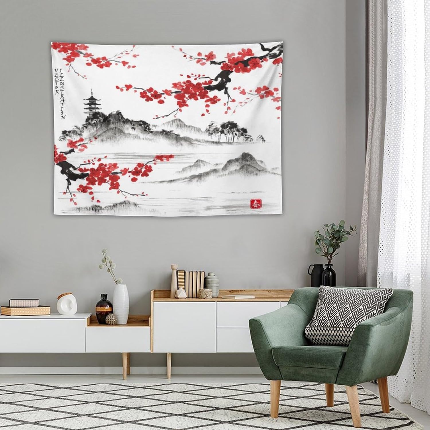 Cherry Blossoms Tapestry, Japanese Fuji Mountain Wall Tapestry, Nature Landscape Wall Art for Bedroom & Living Room Decor, 40"x30"