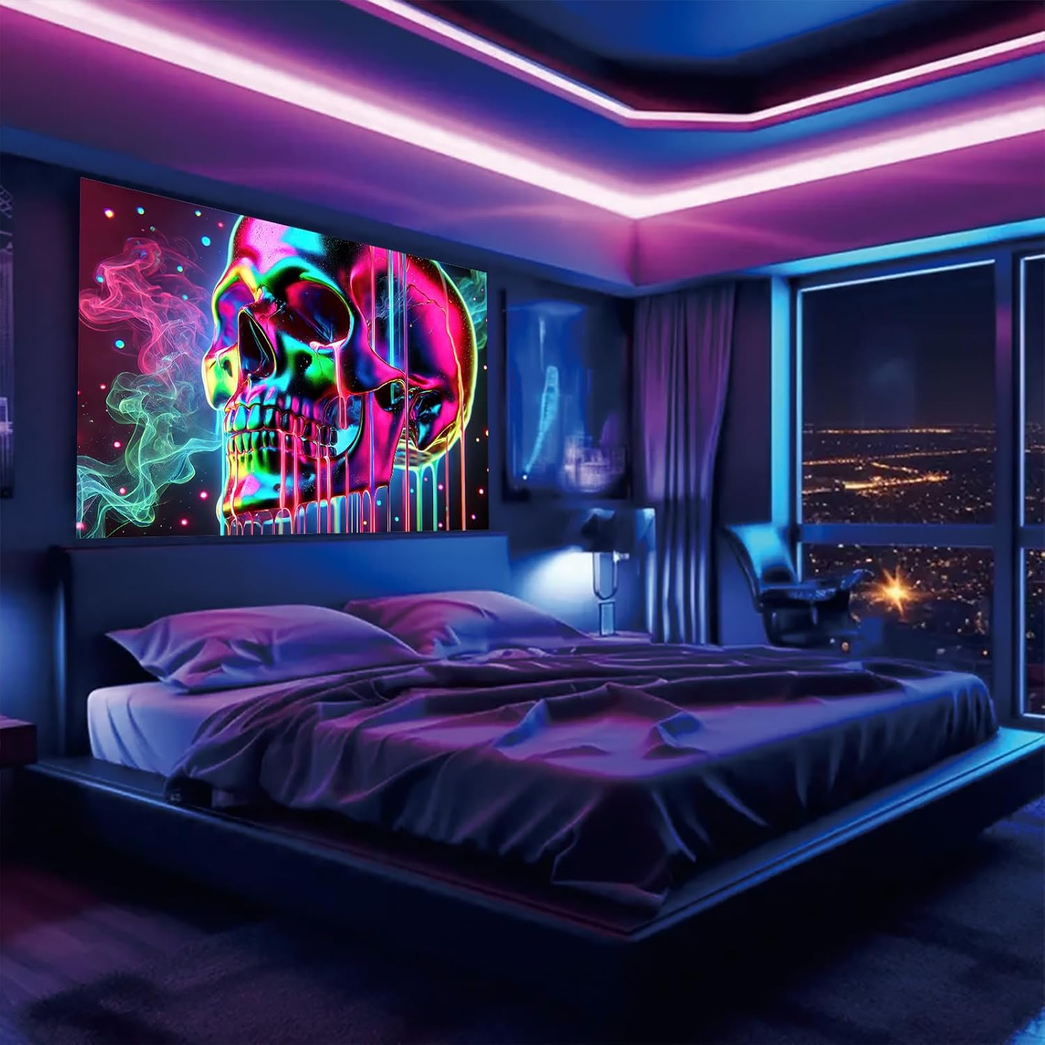 - Trippy & Bold Design: The Blacklight Skull Tapestry combined with smoke and neon lights adds a bold, edgy, and unique touch to any space, perfect for gothic or psychedelic art lovers.