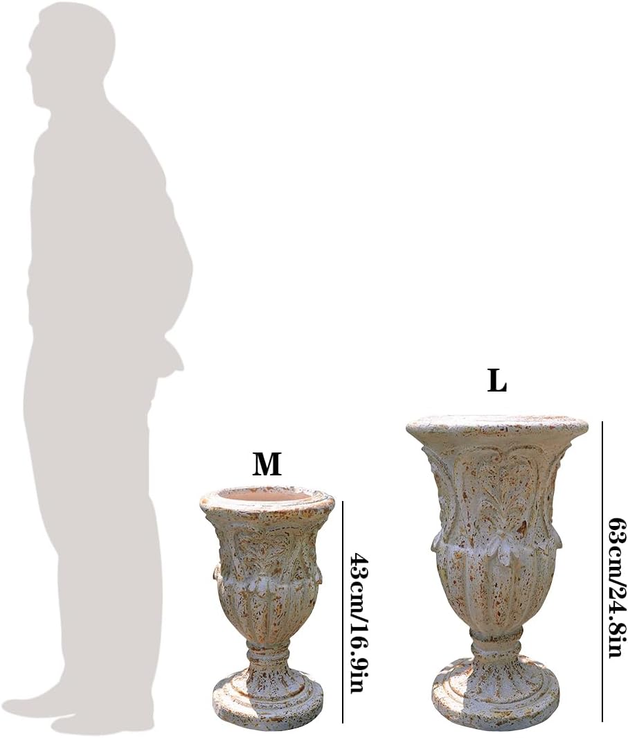 VISIBLE Vintage European Giant Garden Urn Planter, Decorative Cement and Fiber Flower Pot, Make Rust Finished, Wrap Foam Safely Delivered from Los Angeles (Vintage, Medium)