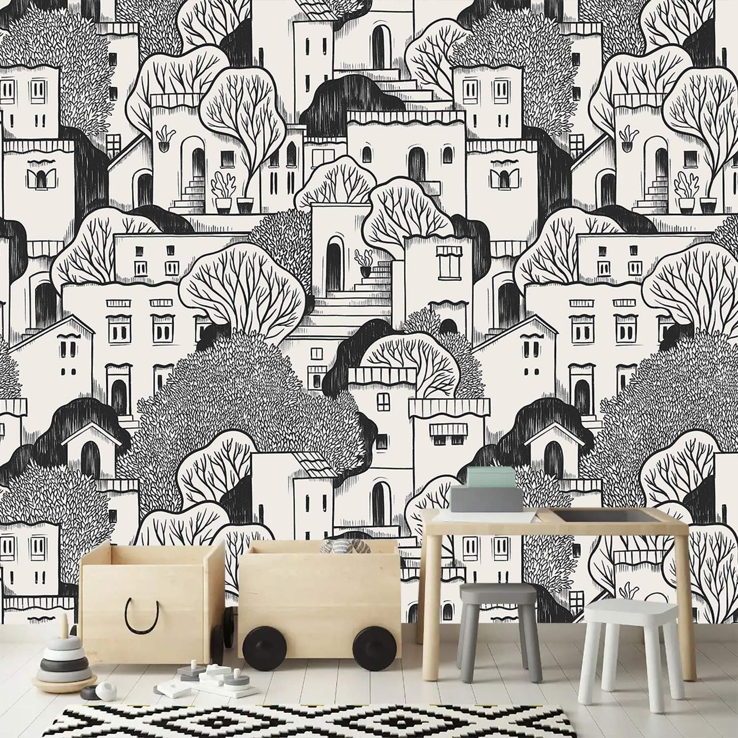 AFZEVEB-Black House with Trees Nursery Wallpaper murals for Bedroom 159"x107" (Not Peel and Stick)