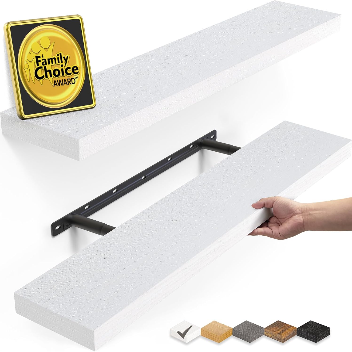 BAYKA Floating Shelves Set of 2, 22.5" Rustic Wood Wall Mounted Shelves for Bathroom, Bedroom, Living Room, Kitchen & Office, Hanging Display Shelf with 22 lbs Capacity (White)