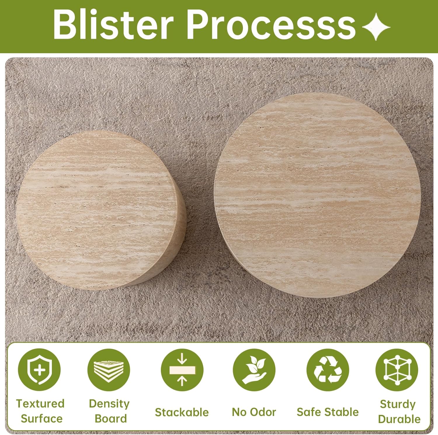- [Style It Your Way â Stack, Nest, or Separate] This nesting coffee table set of 2 features a clever nesting designâone solid, one hollowâgiving you the freedom to stack, spread out, or tuck away as needed. Round nesting coffee table perfect for small spaces and dynamic layouts, adding layers of style to your home!