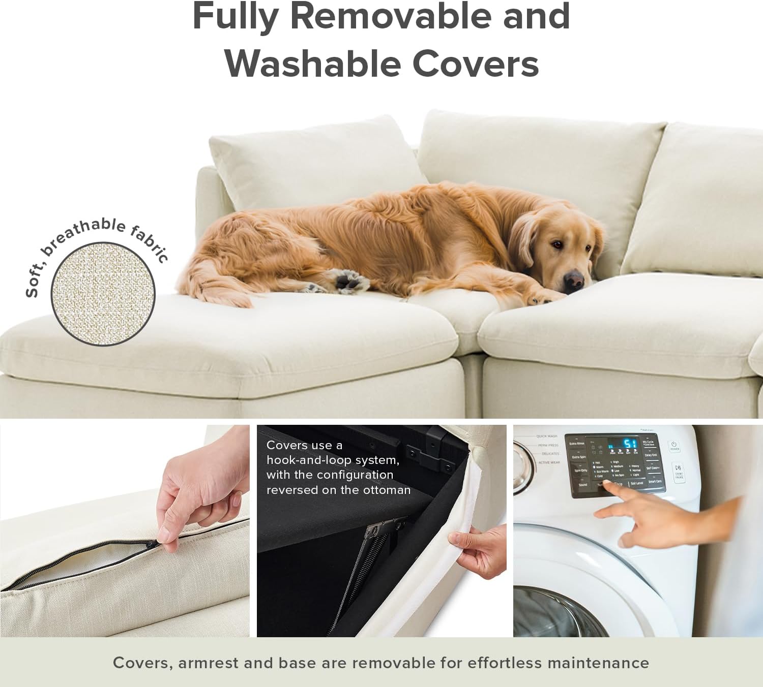 - Fully Removable & Washable Covers for Easy Care: Designed to keep up with real life, all covers, including the armrests and base, are fully removable and machine washable. Whether youâve got kids, pets, or just the occasional spill, this sofa is easy to keep fresh and clean