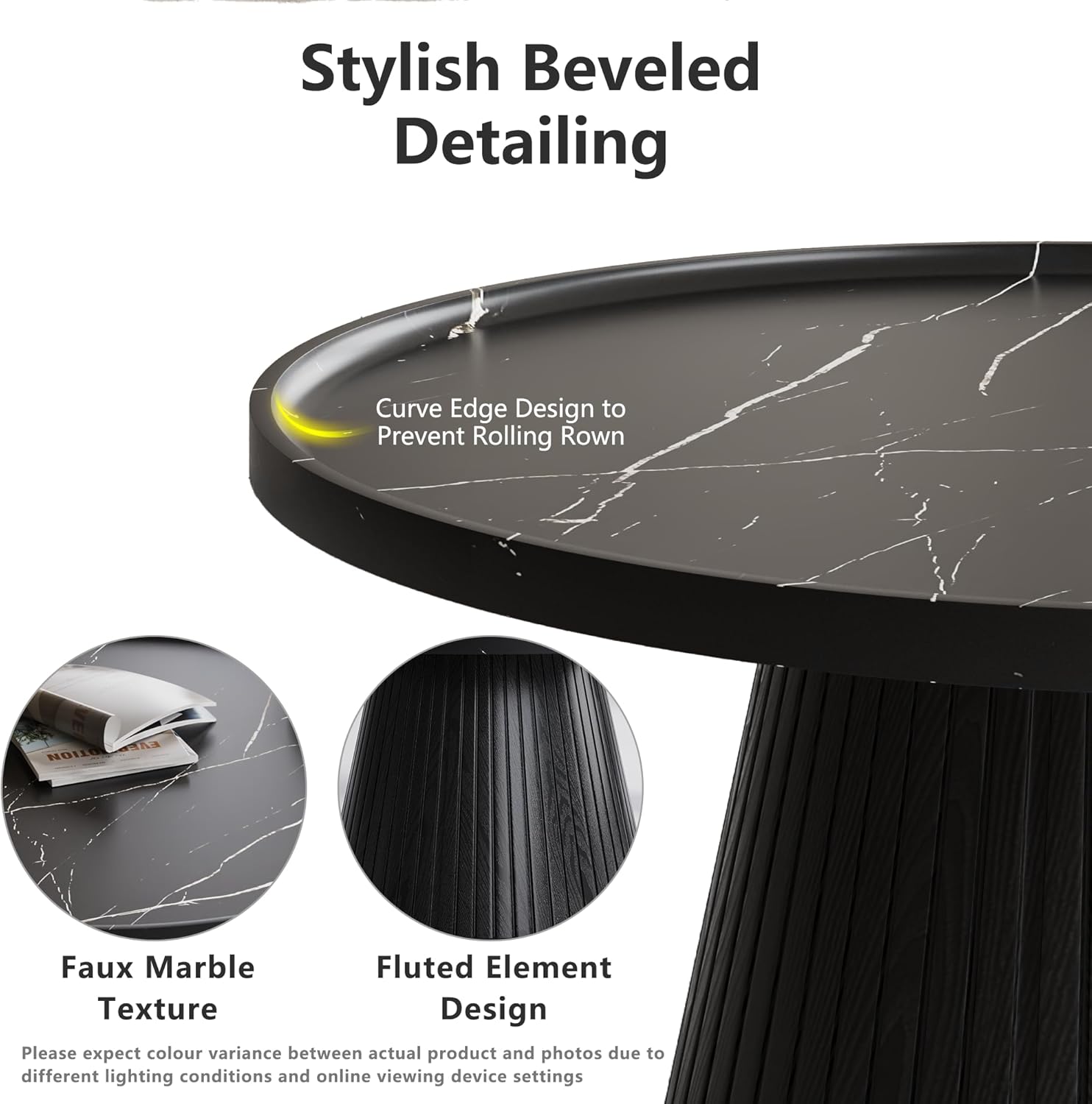 - ăModern Elegance for Any SpaceăElevate your living room with this modern coffee table that blends contemporary style with natural textures. Featuring a round marble-look tabletop paired with a black wood-grain base, it offers a sleek yet inviting aesthetic. The clean lines and refined contrast make it an eye-catching centerpiece, perfect for modern interiors seeking both function and style.