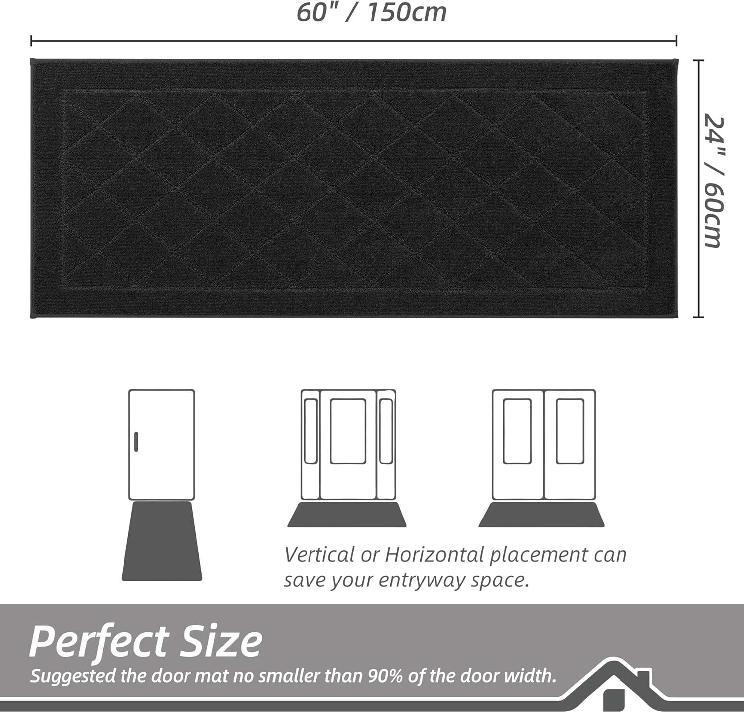 BEQHAUSE Dirt Trapper Door Mat 24" x 60", Doormat Non-Slip Entryway Rugs Washable, Dog Door Mat Stain Resistant and Absorbent Welcome Floor Mat for Front Back Door, Muddy Wet Shoes & Paws, Black