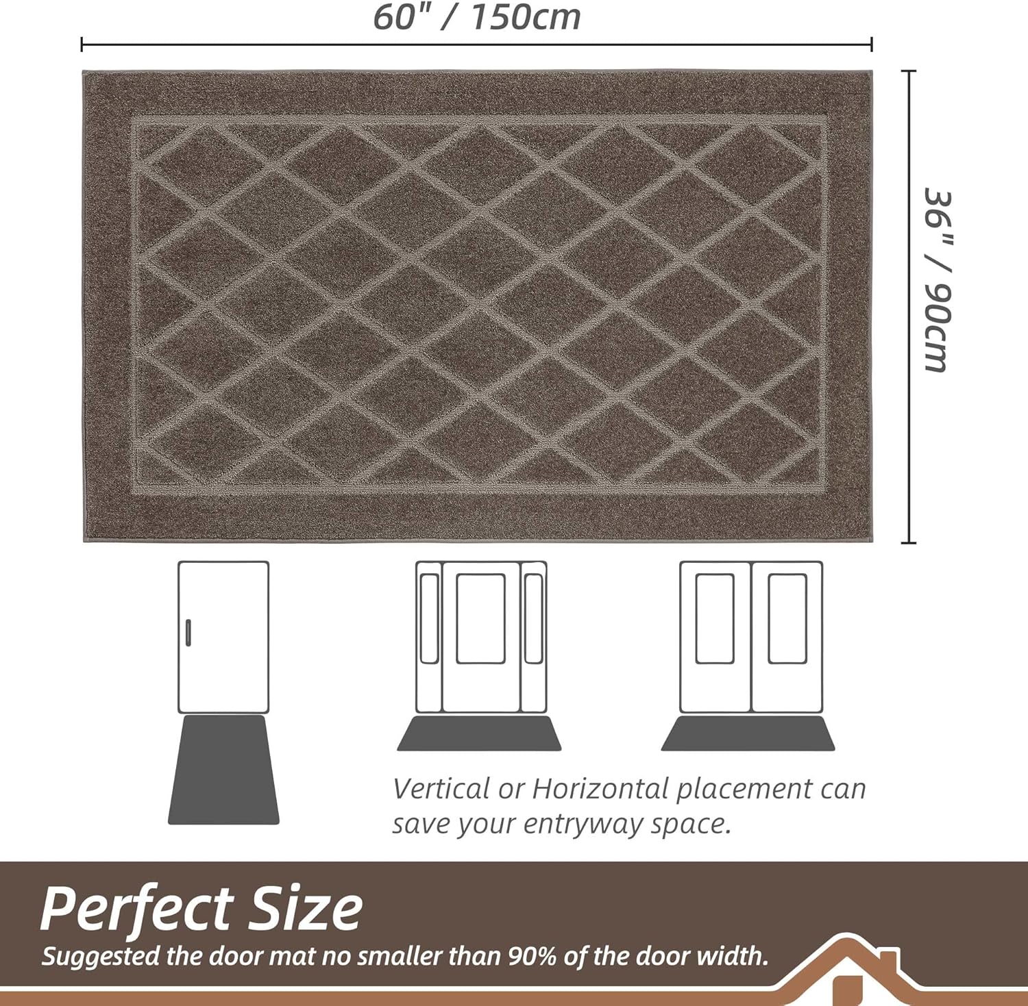- Stylish and Low Profile Design: Fashionable geometric patterns are suitable for most kinds of home décor. Our doormats measure 36" x 60" x 0.45", low-profile design and reinforced overlock edges to ensure that doors won't get stuck or the door rug go curling. Note: Please confirm the height of the door gap before purchasing