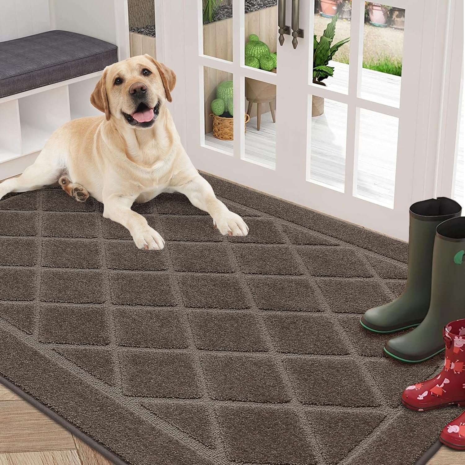 BEQHAUSE Dirt Trapper Door Mat 36" x 60", Doormat Non-Slip Entryway Rugs Washable, Dog Door Mat Stain Resistant and Absorbent Welcome Floor Mat for Front Back Door, Muddy Wet Shoes & Paws, Light Brown