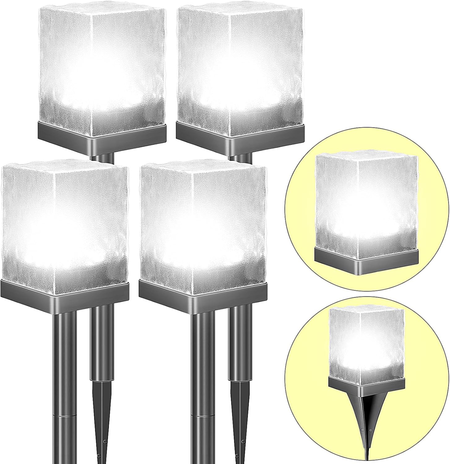 Solar Ice Brick Pathway Lights, LED Outdoor Waterproof Ground Light, Multi-use Landscape Lighting for Lawn & Table | Auto On/Off Solar Powered Garden Yard Decoration (Cool White, 4 Pack)