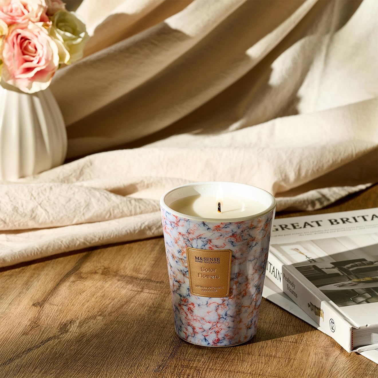 M&SENSE SolarFlowers Scented Candles for Home, Lead-Free Wick Highly Scented Jar Candles, 14.1 Oz 80 Hours Lasting Burning Candles Gifts for Women, Relaxing Aromatherapy Candle for Stress Relief