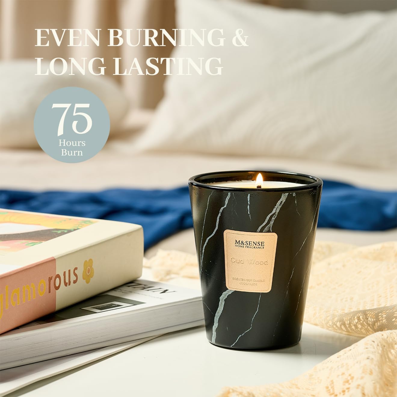 M&SENSE OudWood Scented Candles for Home, Lead-Free Wick Highly Scented Jar Candles, 14.1 Oz 80 Hours Lasting Burning Candles Gifts for Women, Relaxing Aromatherapy Candle for Stress Relief