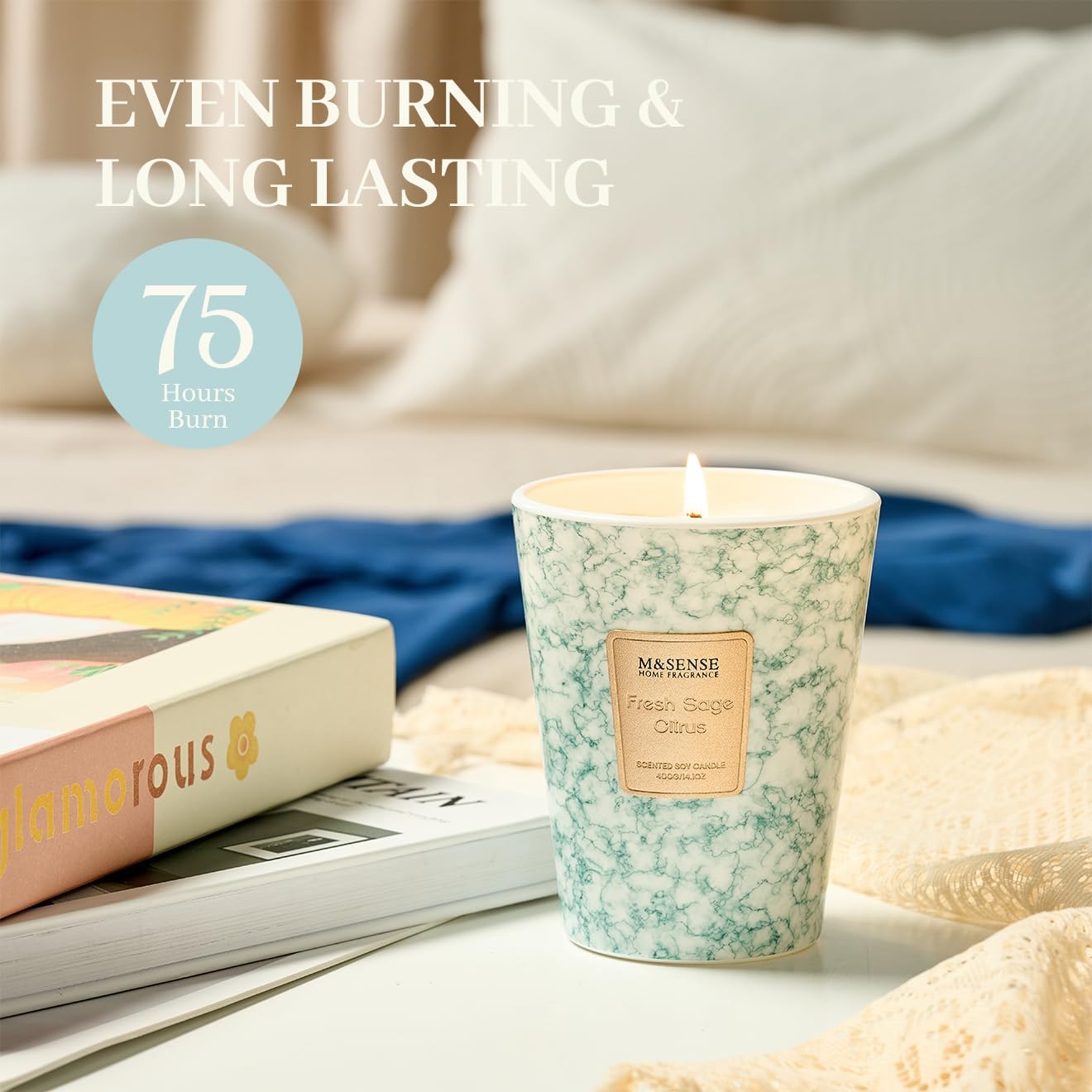 M&SENSE FreshSage Citrus Scented Candles for Home, Lead-Free Wick Highly Scented Jar Candles, 14.1 Oz 80 Hours Lasting Burning Candles Gifts for Women, Relaxing Aromatherapy Candle for Stress Relief