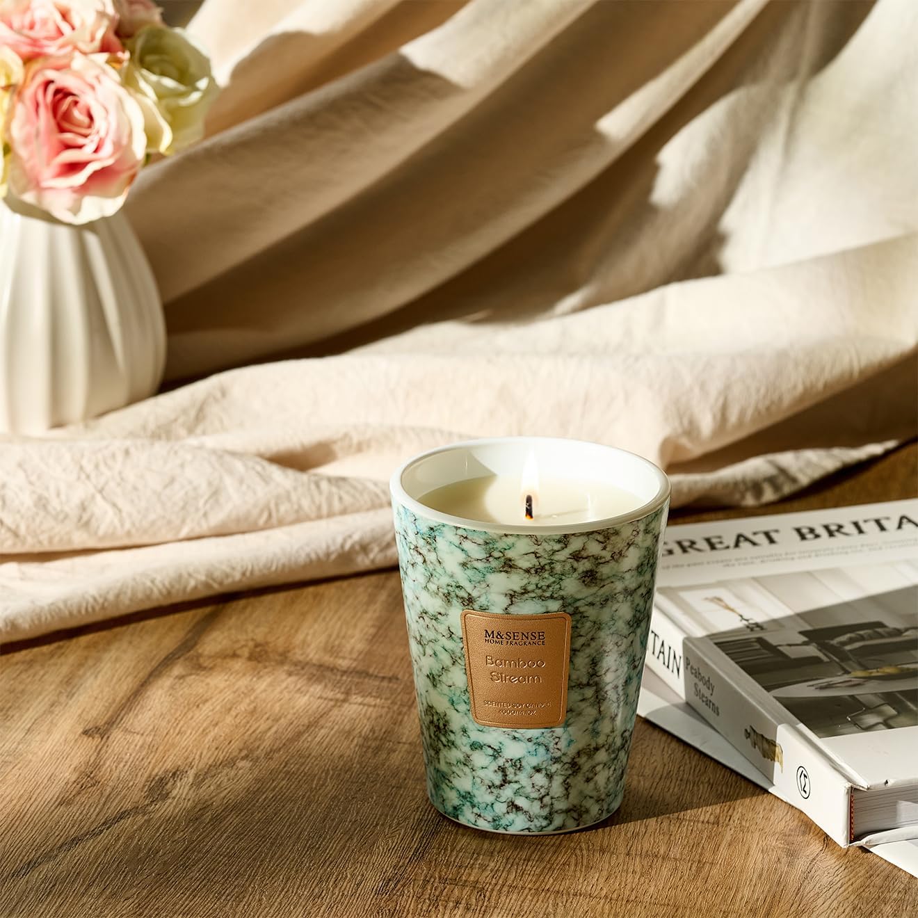 M&SENSE BambooStream Scented Candles for Home, Lead-Free Wick Highly Scented Jar Candles, 14.1 Oz 80 Hours Lasting Burning Candles Gifts for Women, Relaxing Aromatherapy Candle for Stress Relief