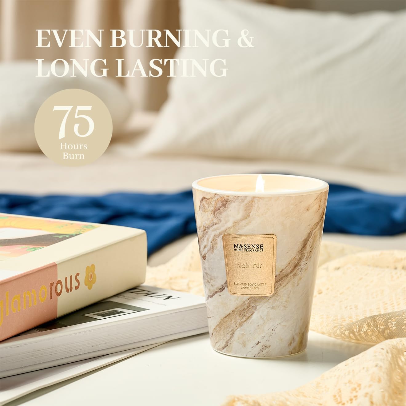 M&SENSE NoirAir Scented Candles for Home, Lead-Free Wick Highly Scented Jar Candles, 14.1 Oz 80 Hours Lasting Burning Candles Gifts for Women, Relaxing Aromatherapy Candle for Stress Relief