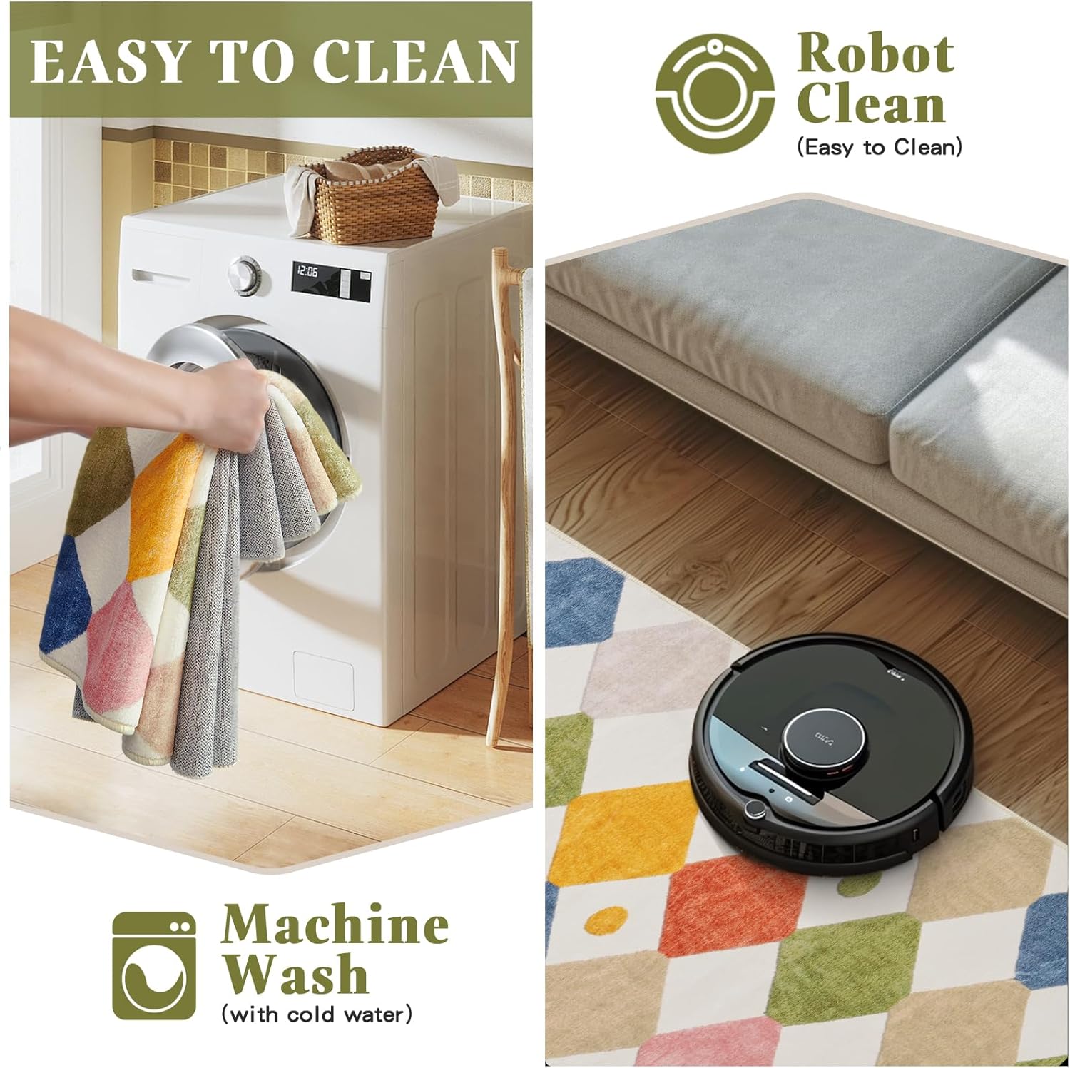 - Warm Vintage Colorful Design: Adorned with delightful diamond lattice splicing pattern against a soft cream bottom, this rug adds a playful charm to children's rooms and infuses vitality into adult spaces