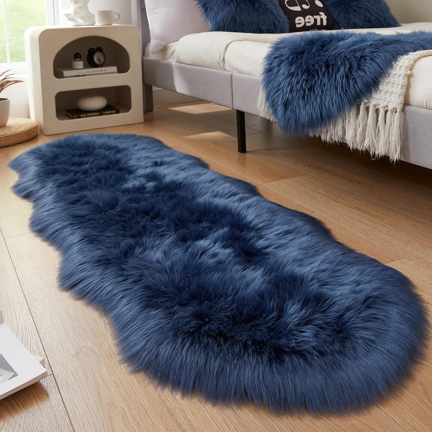- 【Ultra-Plush & Hypoallergenic Faux Fur Rug】Crafted from premium faux sheepskin fur (like a sheepskin rug), this fluffy rug features 2.8-inch high-density shag rug pile for cloud-like softness. Made of 100% polyester fiber, it's hypoallergenic, no shedding, and safe for kids, pets, perfect as a bedroom rug or living room rug.