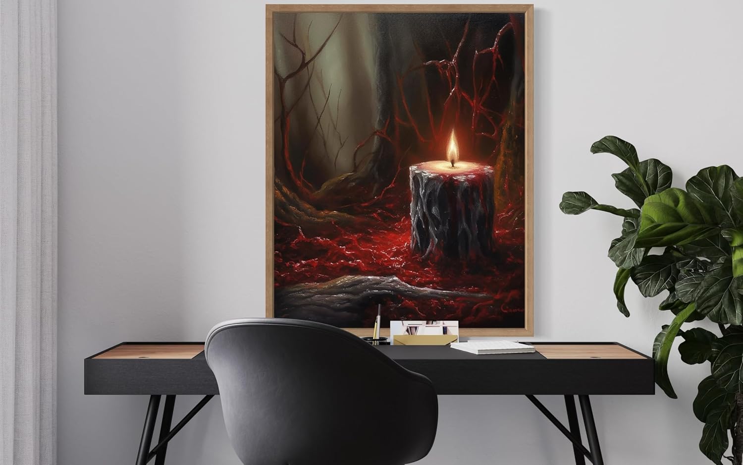 Gothic Candle Poster Art Print, Halloween Scary Vintage Wall Art Academia Spooky Painting Decoration for Horror Prints, Posters Bedroom Decor 89 (Gothic Candle, 8 x 10 inches, Wood Frame)