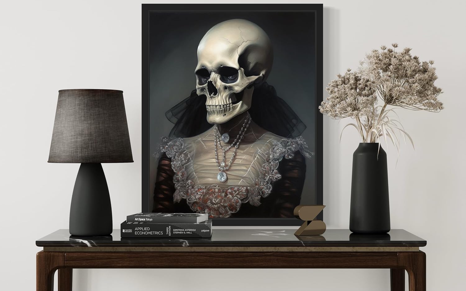 Female Skull Poster Art Print, Halloween Scary Vintage Wall Art Academia Spooky Painting Decoration for Horror Prints, Gothic Posters Bedroom Decor 89 (Female Skull, 11 x 14 inches, Black Frame)
