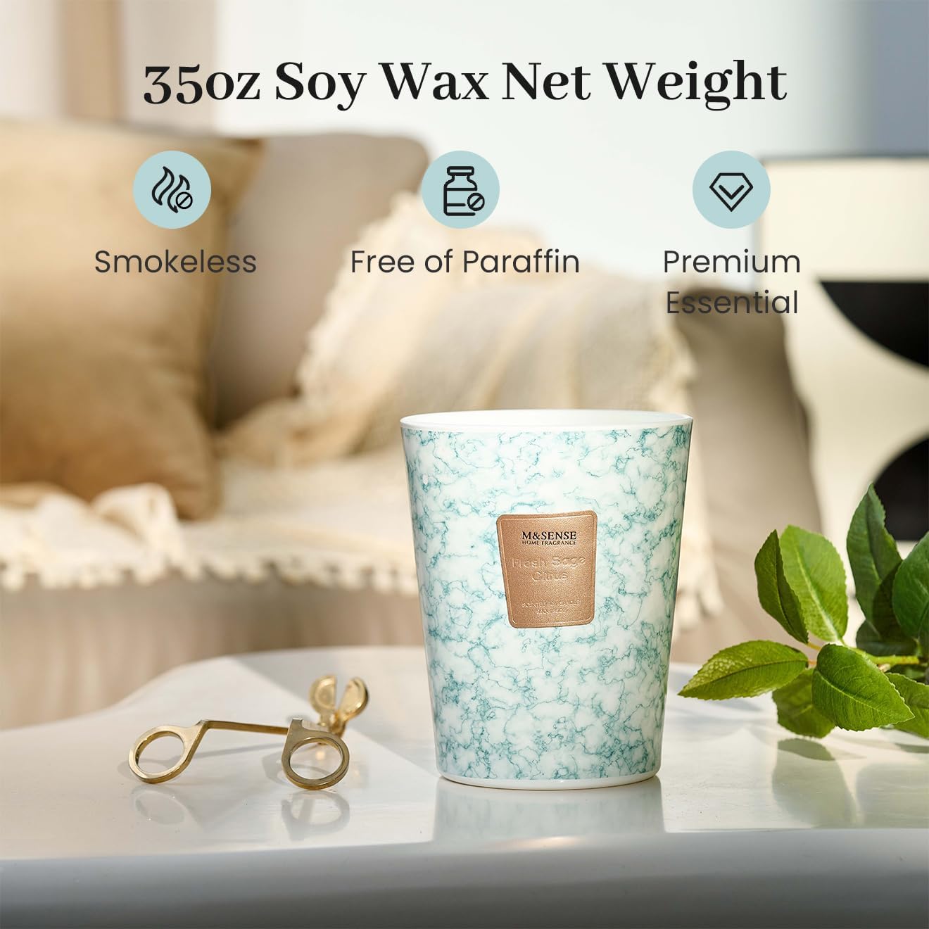 M&SENSE FreshSage Citrus Scented Candles for Home, 3-Wick Highly Scented Jar Candles, Extra Large Candle 35 Oz 150 Hours Long Lasting Burning, Relaxing Aromatherapy Candle for Stress Relief,Meditation