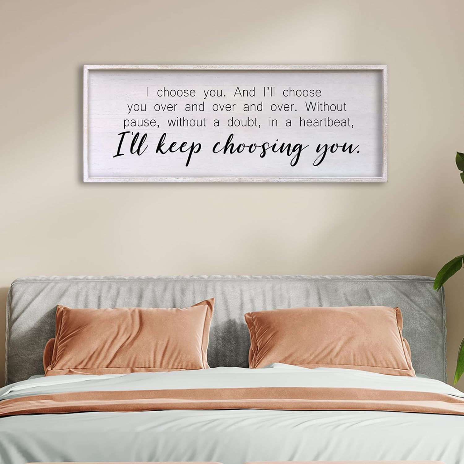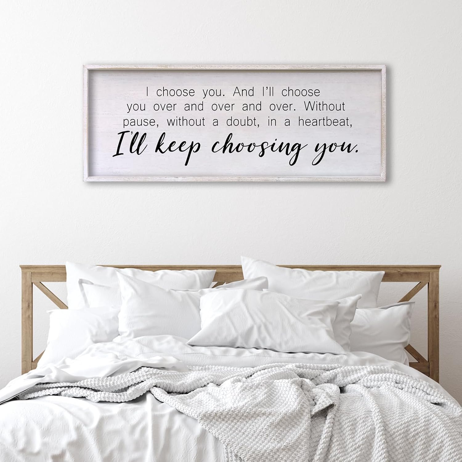 I Choose You Sign Wall Decor Art Above Bed 32X12 Inch I Love You Romantic Wood Framed for Master Bedroom Over Bed I'll Keep Choosing You Sign (White)