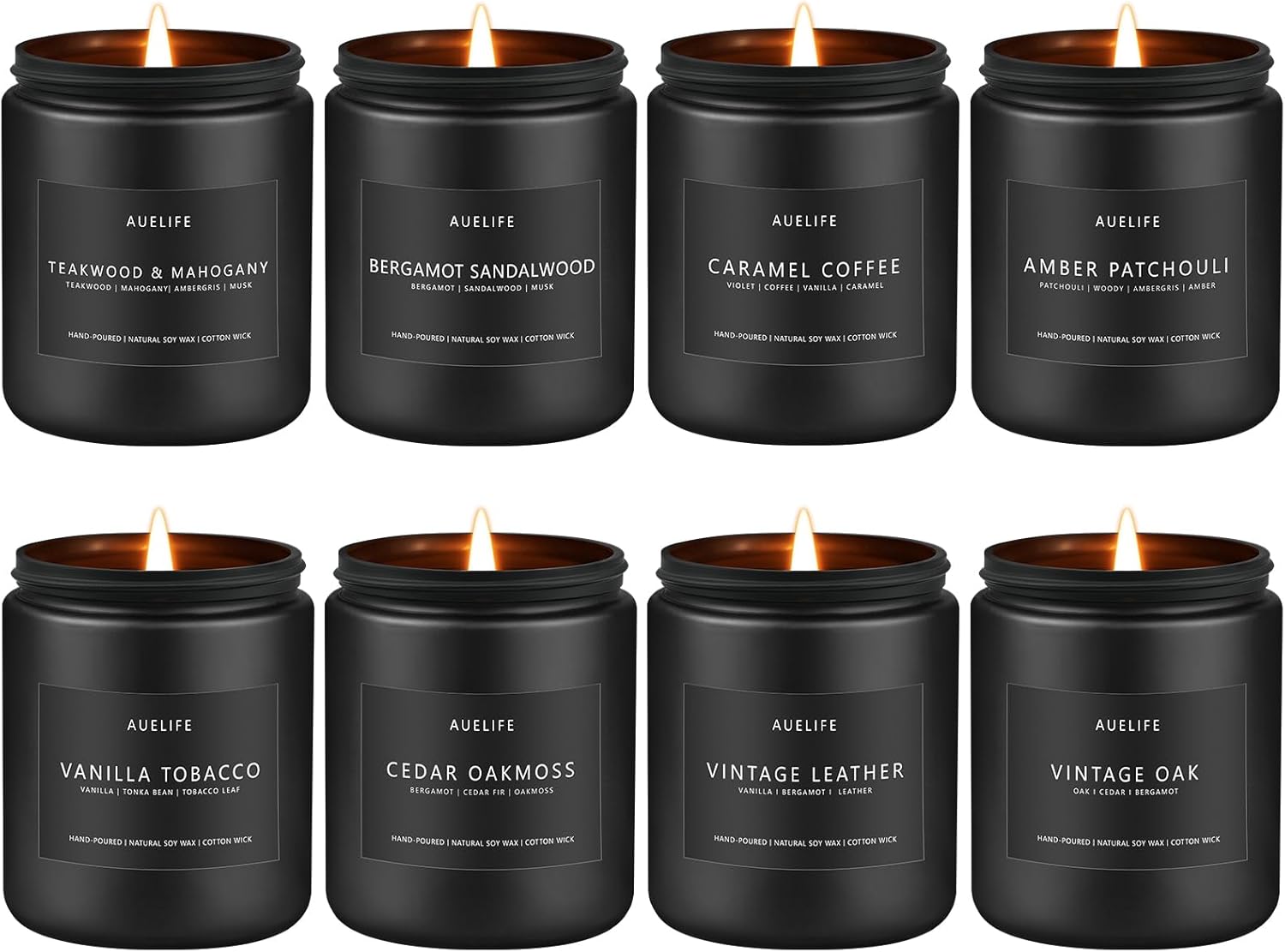 - 【8 Unique Masculine Scents】Premium soy jar candles featuring Teakwood & Mahogany/Bergamot Sandalwood/Caramel Coffee/Amber Patchouli/Vanilla Tobacco/Cedar Oakmoss/Vintage Oak/Vintage Leather - curated for men's preferences.
