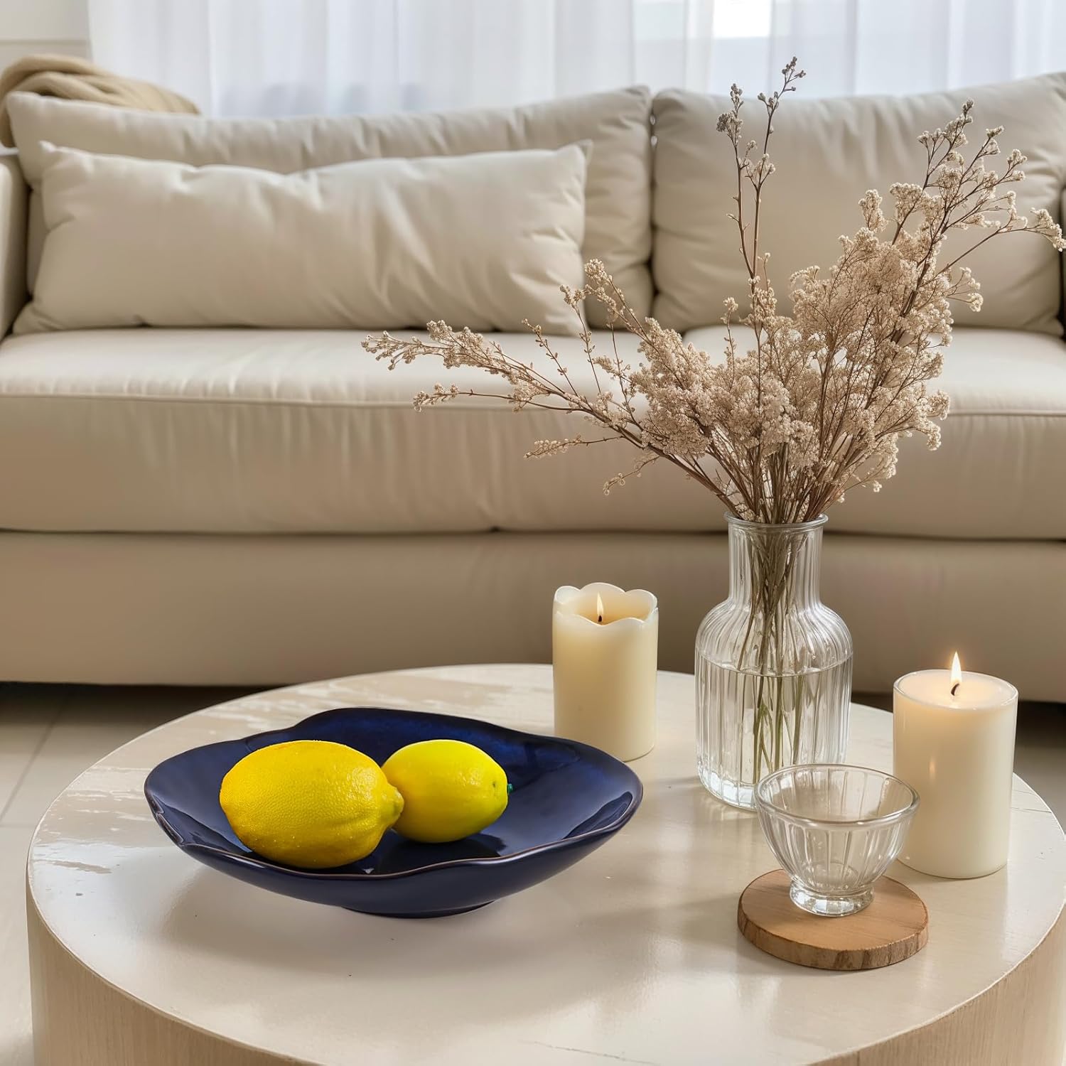 - Ocean-Inspired Glaze with Organic Charm: This blue decorative bowl features a calming ocean-inspired glaze and flowing silhouette, enhanced by rustic brown edges. Whether styled as a ceramic decorative bowl or placed atop blue trays for decor, its artisanal shape adds a unique character to any table. Pair with a ring bowl, ceramic key bowl, or use standalone for visual impact