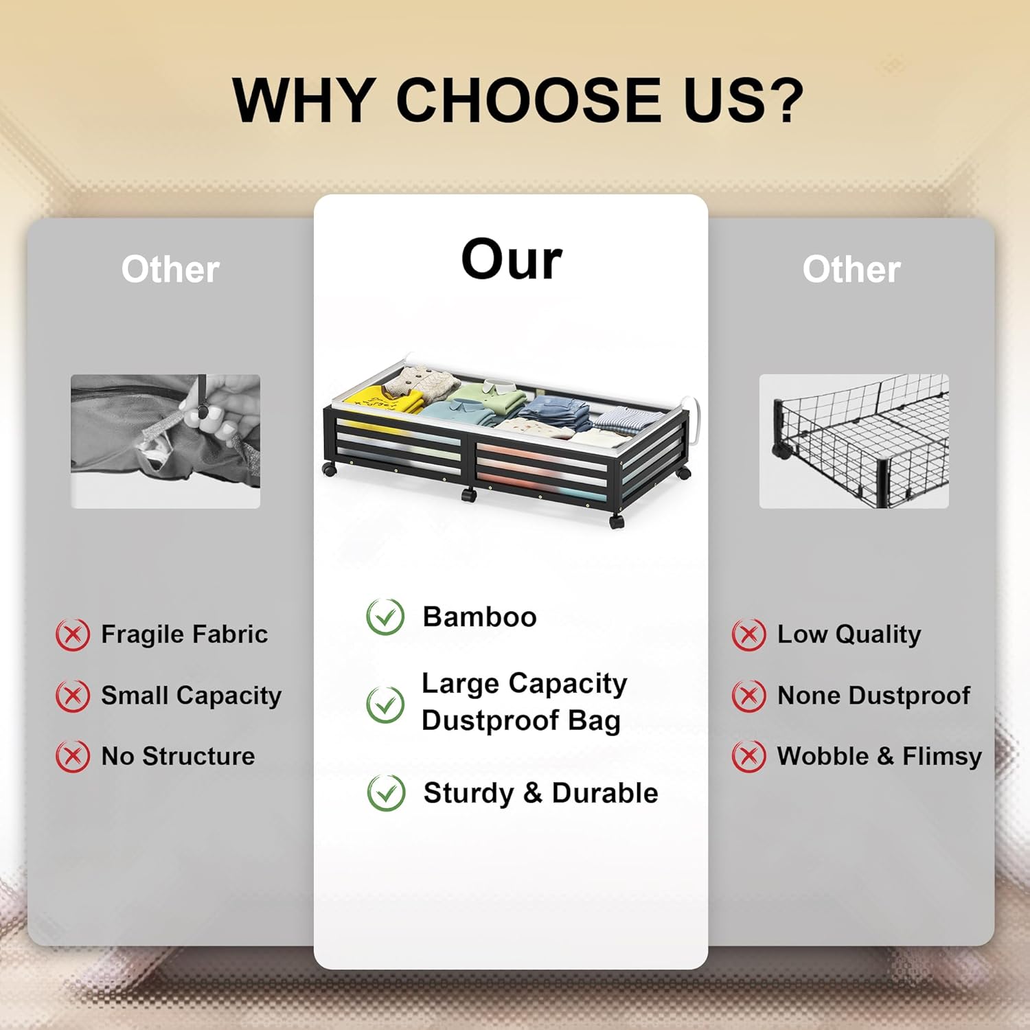 - 【Sturdy & Durable】Made from 100% natural bamboo; supports up to 120 lbs; includes a dust-proof bag for seasonal clothing and essentials