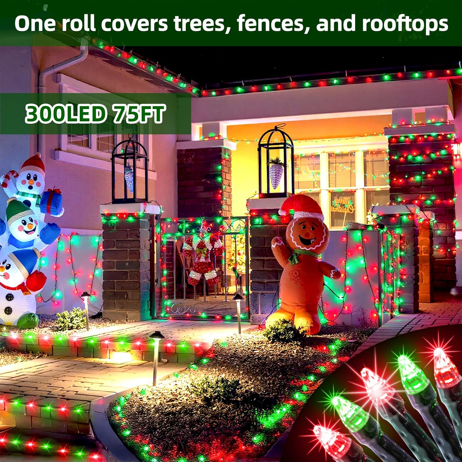 - Perfect Size for Everyday Decorating: At 75ft with 300 LEDs in red and green, these Christmas string lights fill your home with a warm, festive glow. The perfect length for balconies, porches, stair railings, mantels, or a 7–9ft Christmas tree. Not too long, not too short—ideal for cozy holiday nights. Connect up to 3 sets (225ft, 900 LEDs total) to bring bold Christmas spirit to fences, patios, or the housefront.