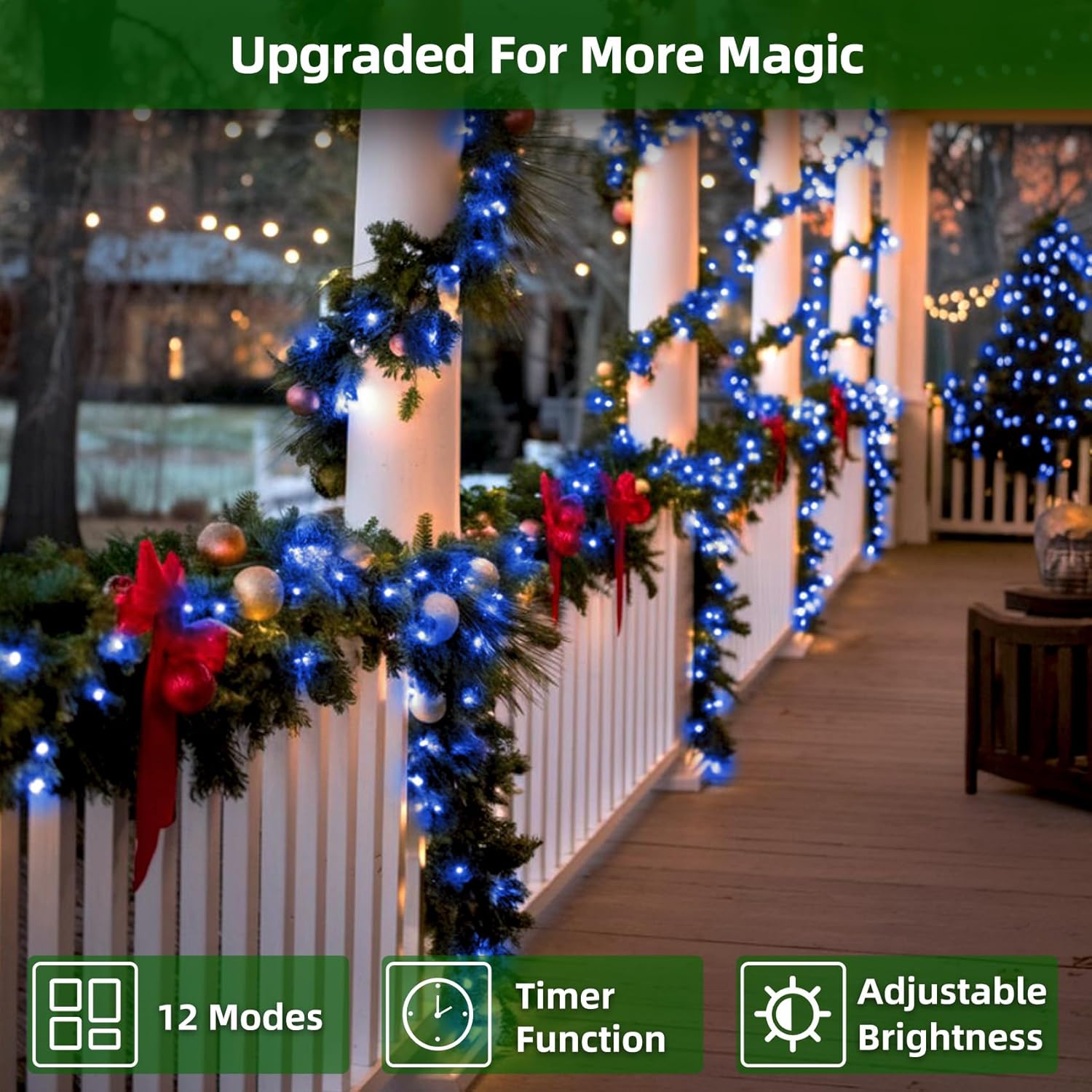 - Perfect Size for Everyday Decorating: At 75ft with 300 LEDs in blue, these Christmas string lights create a calm, dreamy holiday atmosphere. Perfect for balconies, porches, stair railings, mantels, or a 7â9ft Christmas tree. The ideal length for intimate spaces. Connect up to 3 sets (225ft, 900 LEDs total) to transform fences, patios, or your housefront into a serene winter wonderland.