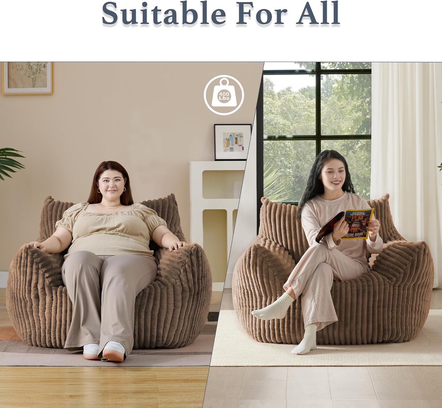 Giant Plush Bean Bag Chair for Adults with Armrests - Oversized Comfy Khaki Beanbag Lounge Lazy Floor Sofa Chair for Living Room, Bedroom & Dorm, Cozy Fluffy Single Cloud Mini Couch