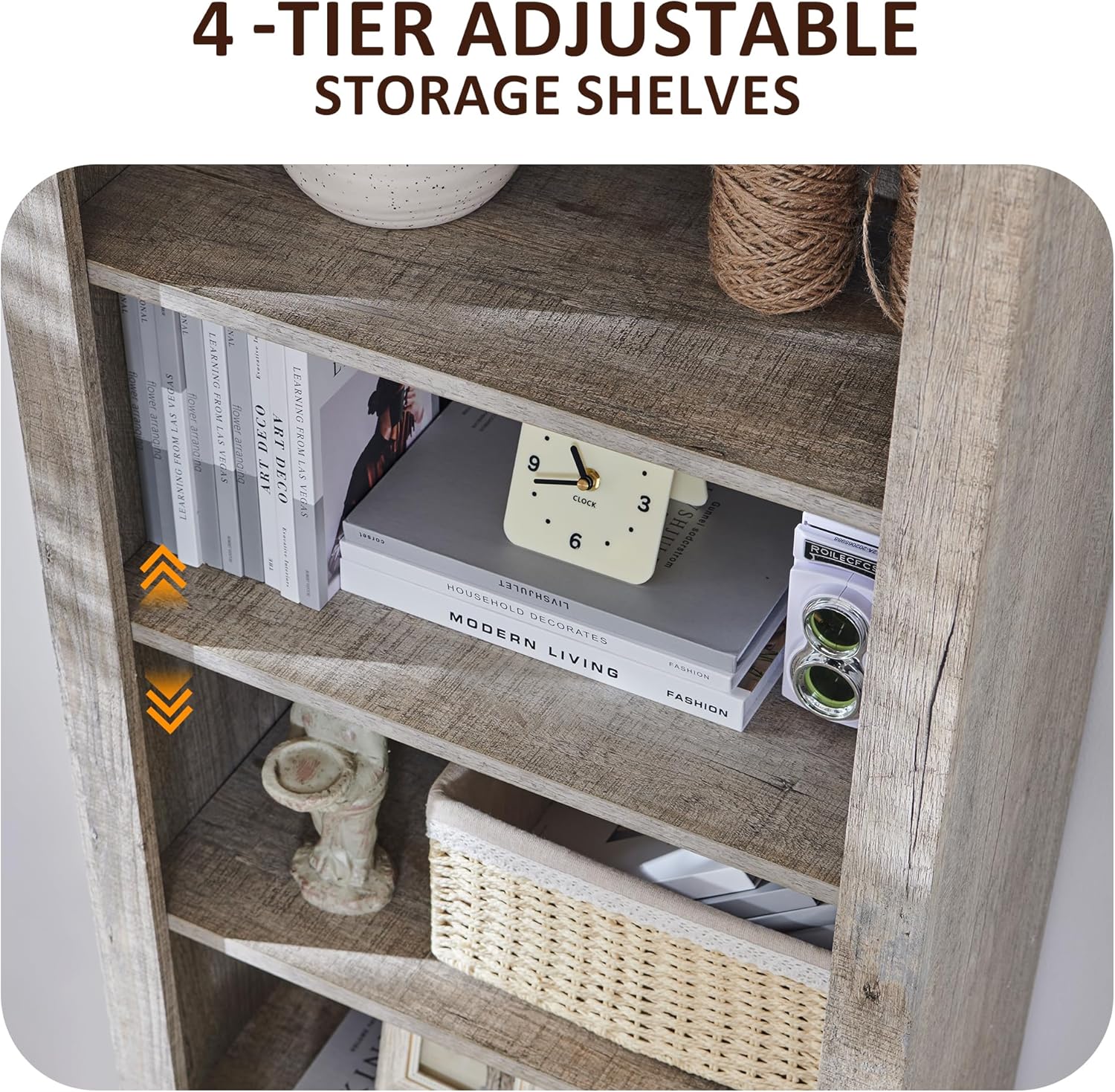 - 4-Tier Open Adjustbale Shelf Design : Featuring 3 removable shelves with ergonomic height customization for versatile item organization, plus an adjustable interior shelf within the hutch for personalized storage configurations
