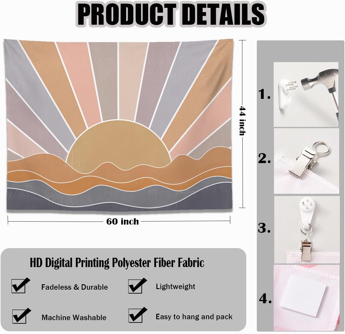 - Premium Quality: Made from soft breathable polyester with reinforced edges. Easy to hang with included loops - just add push pins or drape for instant boho charm