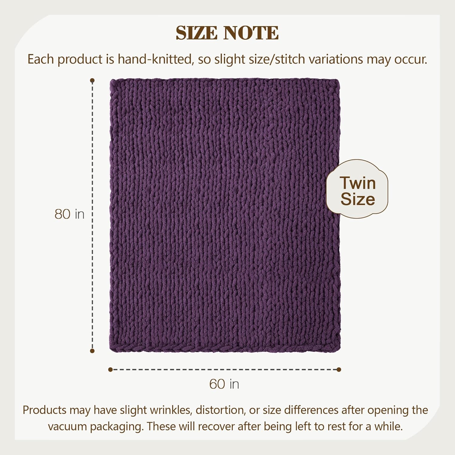 Carriediosa Chunky Knit Throw Blanket 60" X 80" Twin, 100% Hand Made Large Chenille Loop Yarn Soft Fluffy Throws for Couch Sofa Bed, Big Crochet Cozy Heavy Thick Cable Woven Blanket, Dark Purple