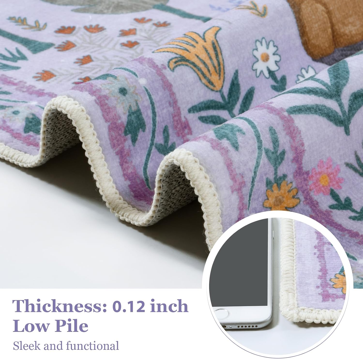 - Kids & Pets Friendly: This soft rug for nursery is suitable for kids and pets to play on. Its 0.12-inch low-pile design ensures a plush texture without being too bulky and prevents food crumbs, fur, hair, and dirt from getting trapped inside, making it perfect for high traffic area